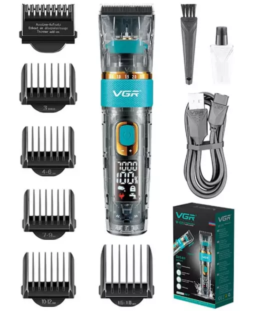 Машинка для стрижки волоc и бороды VGR V-695 с LED дисплеем IPX7 степень влагозащиты
