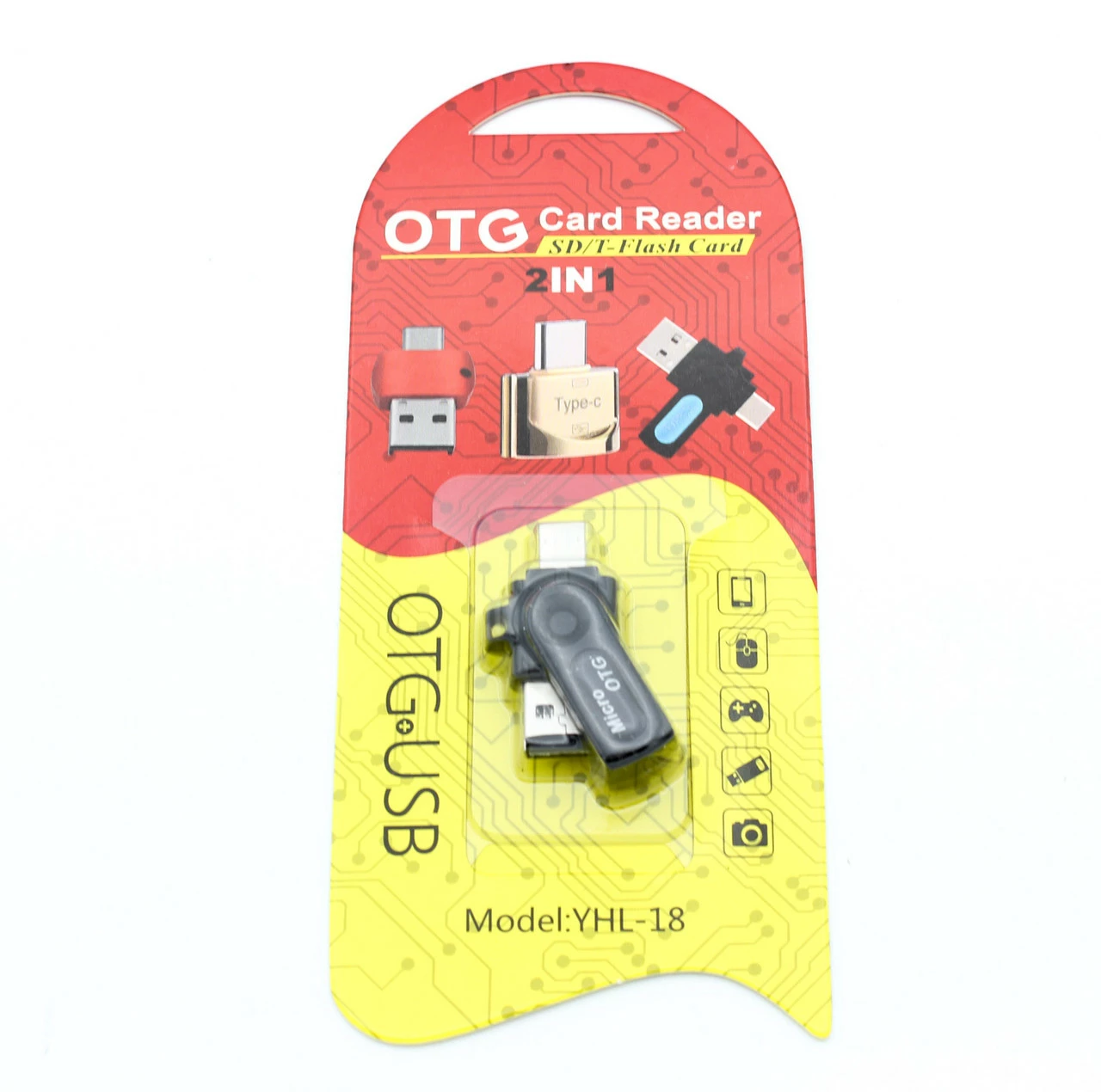 Мини карт-ридер OTG 2 в 1 YHL-18 Microsd, MicroUSB, USB входа