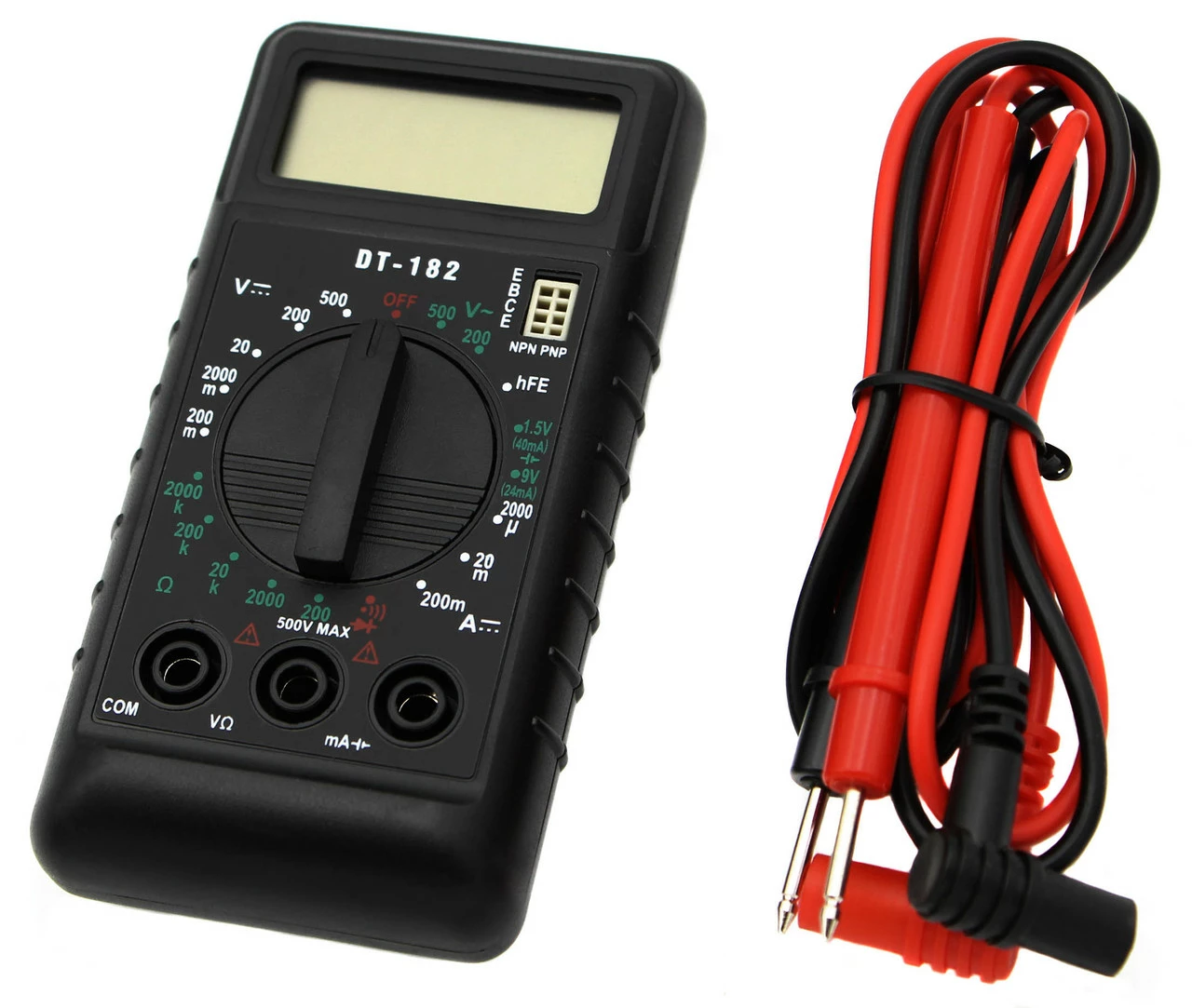 Цифровой мультиметр со звуком. Упакован в блистер. В комплекте есть кабеля.