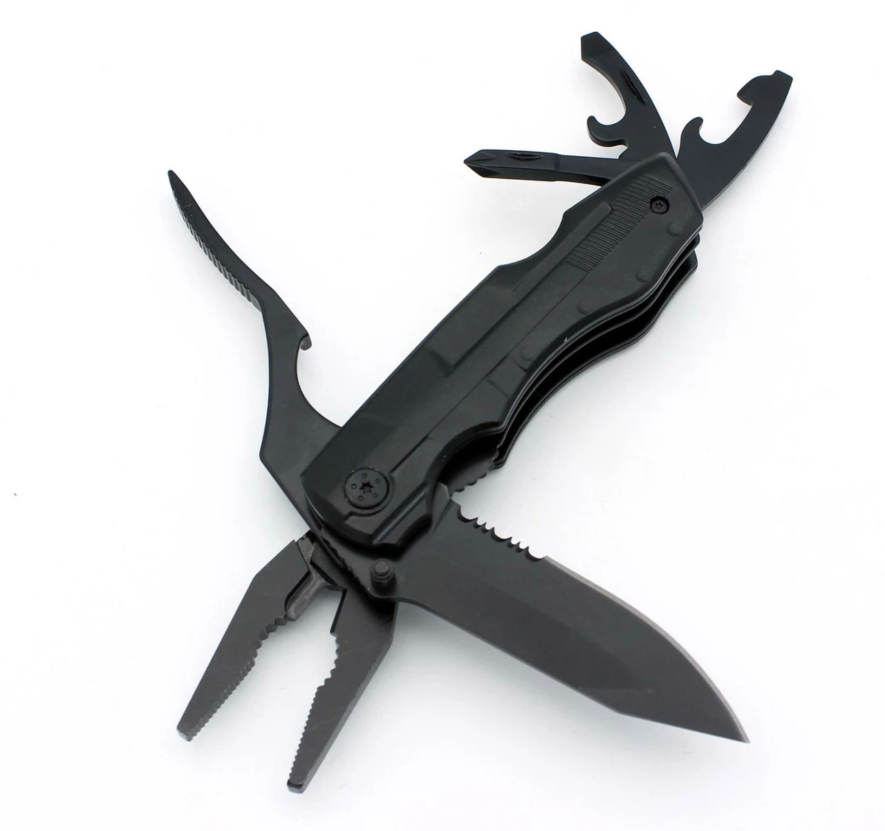 - Инструменты в комплекте: Битодержатель|Биты|Кусачки|Нож|Ножницы|Отвертка|Открывалка|Пила|Плоскогубцы