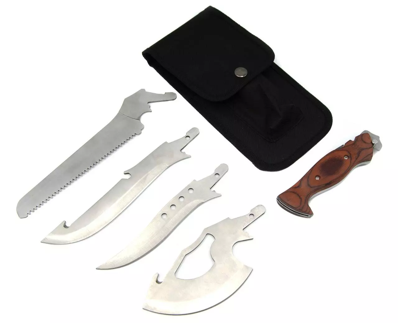 ТУРИСТИЧЕСКИЙ КОМПАКТНЫЙ НАБОР НОЖ - ПИЛКА - ТОПОРИК - ТЕСАК: 4 насадки, 1 рукоять, чехол.