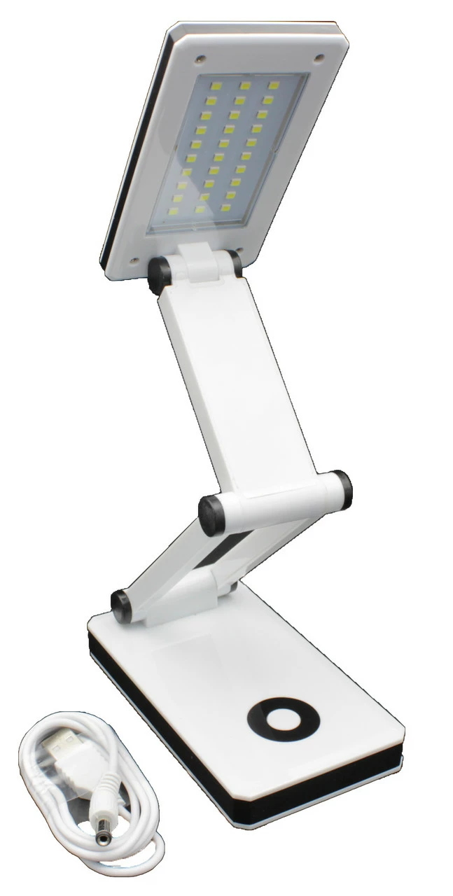 Настольная лампа 120 люменов, может работать от Батареек. Механическая кнопка с тремя режимами работы, минимальный, средний и максимальный режим. Так же компактно слаживаеться для удобного перемещения.