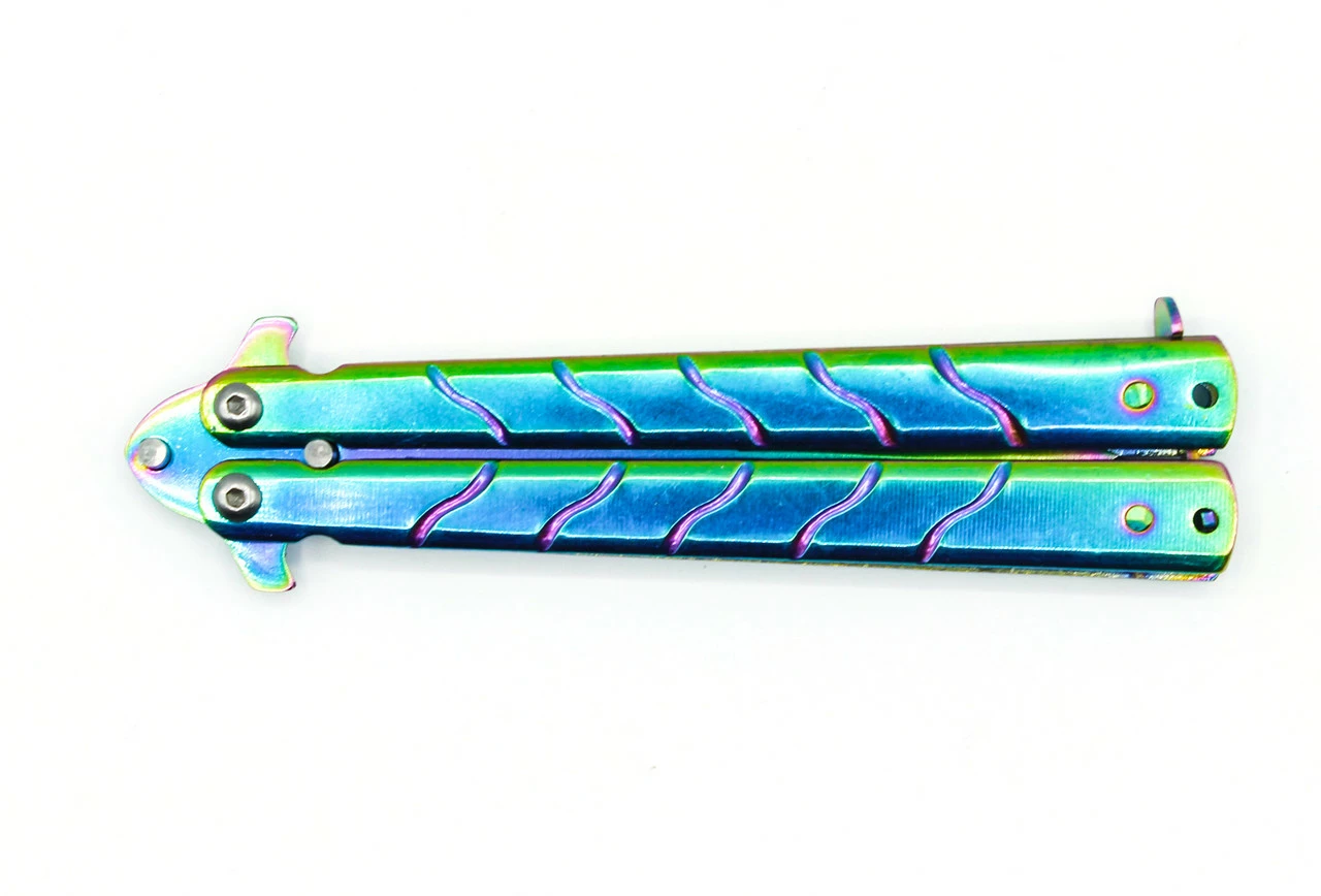 Нож бабочка выполнен в оригинальном дизайне, лезвие ножа имеет заводскую заточку, что обеспечивает долгую эксплуатацию лезвия.