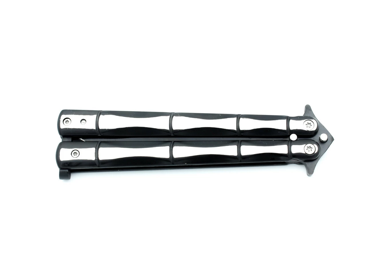 Нож бабочка выполнен в оригинальном дизайне, лезвие ножа имеет заводскую заточку, что обеспечивает долгую эксплуатацию лезвия. Заточка двухсторонняя.