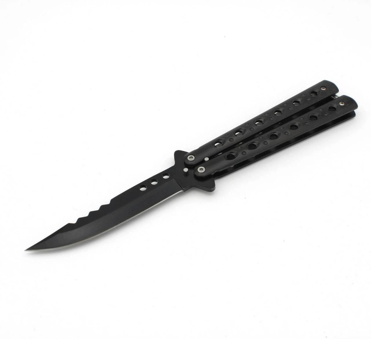 Нож бабочка выполнен в оригинальном дизайне, лезвие ножа имеет заводскую заточку, что обеспечивает долгую эксплуатацию лезвия.