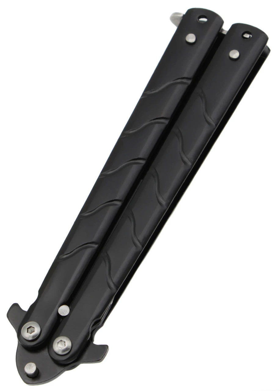 Нож бабочка выполнен в оригинальном дизайне, лезвие ножа имеет заводскую заточку, что обеспечивает долгую эксплуатацию лезвия.