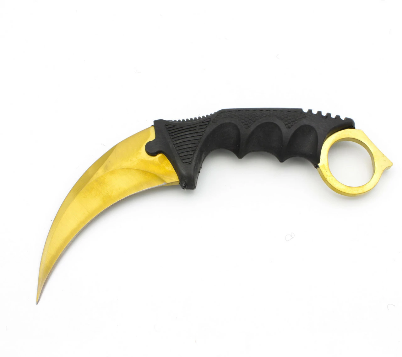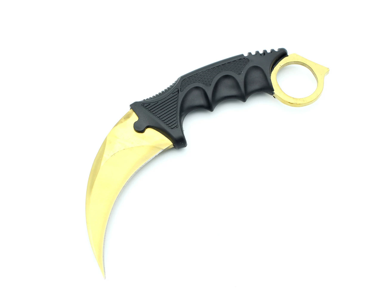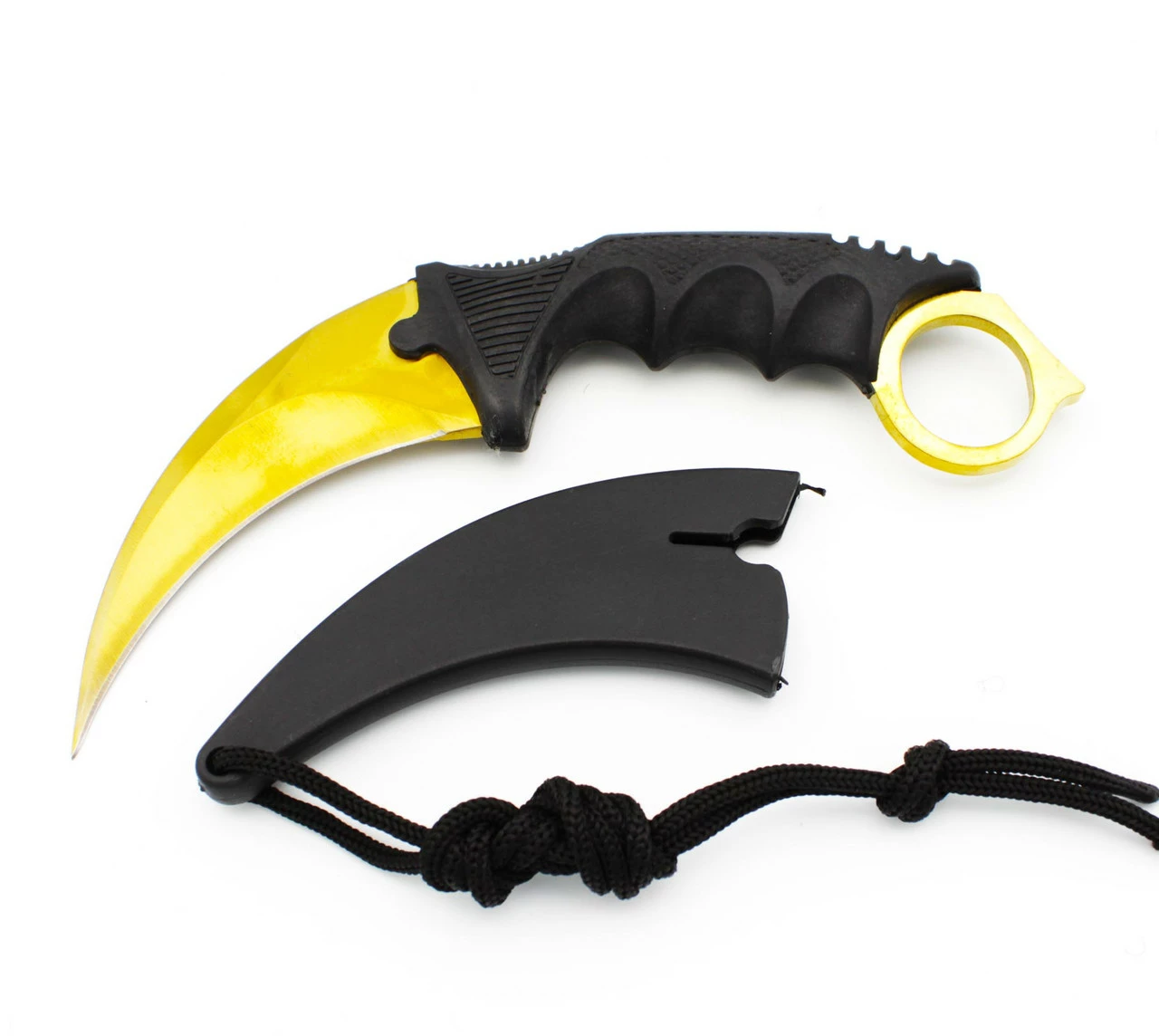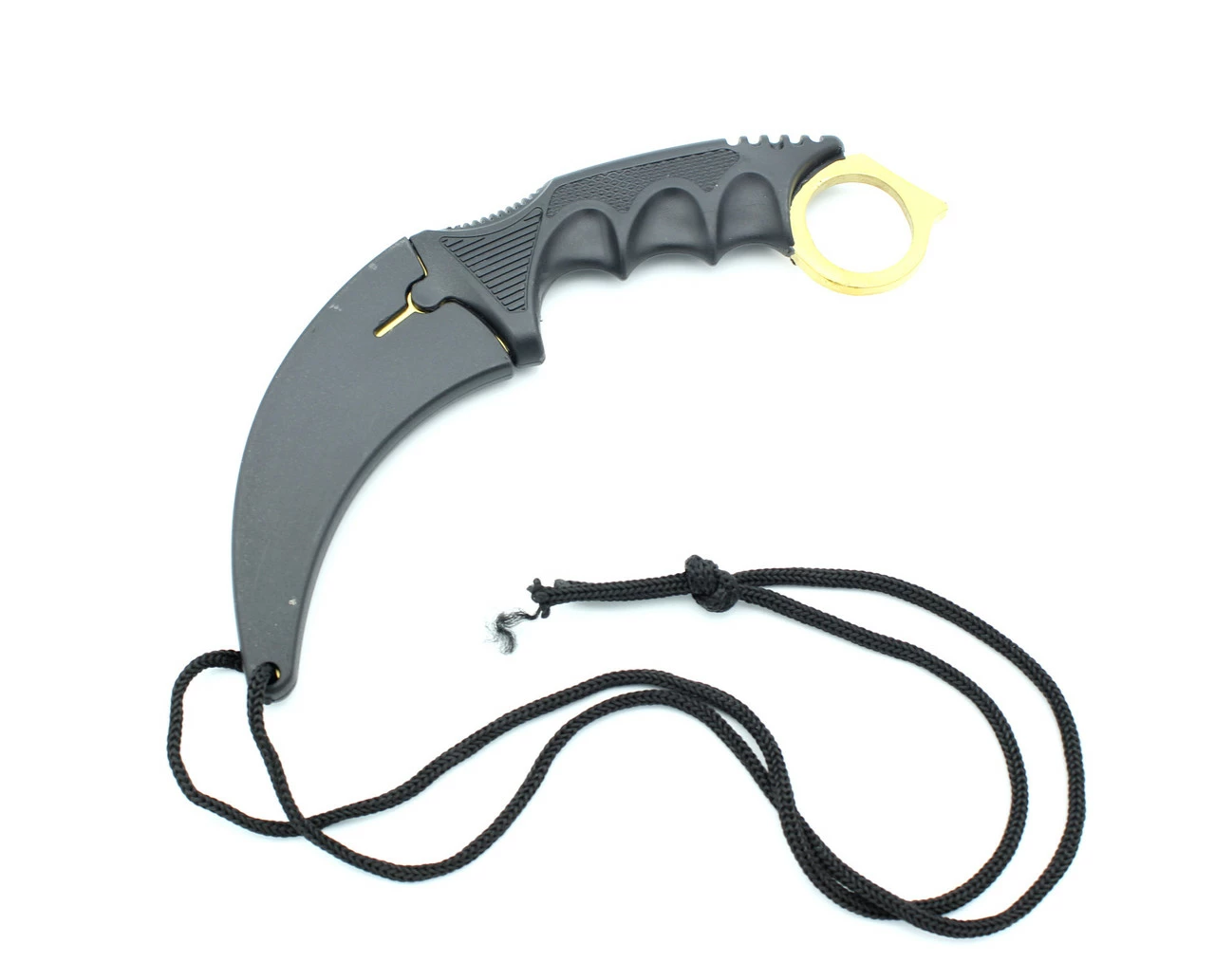 Нож керамбит в чехле, сделан с хорошего сплава и пластиковой ручкой, на конце ручка под палец.