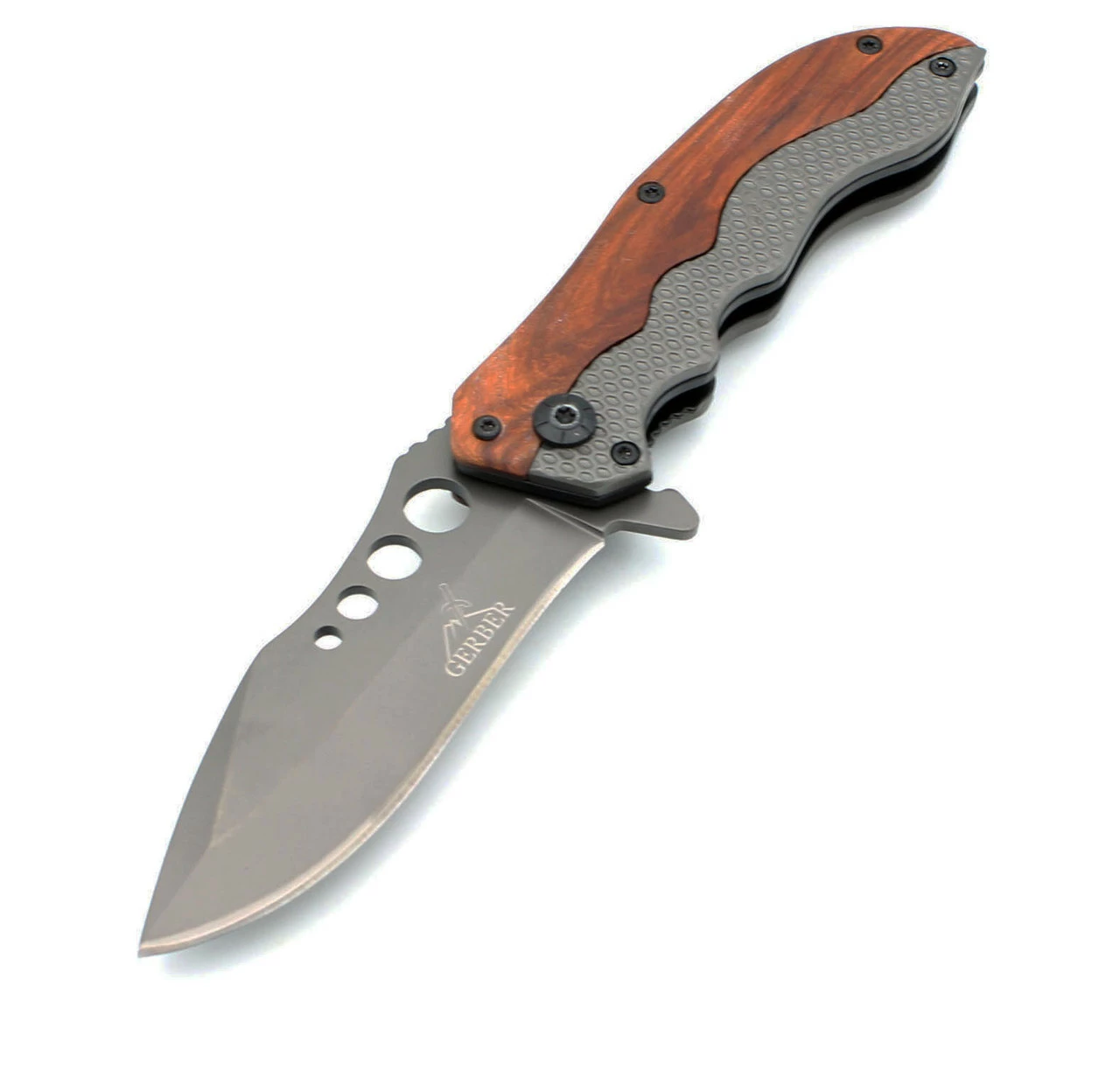 Складной нож Gerber - оригинальный, удобный и компактный. Отличается стильным и современным дизайном, такой нож незаменим в походе, на природе, охоте или рыбалке, может использоваться так же в повседневной жизни. Легок и удобен в использовании, универсален в области применения.