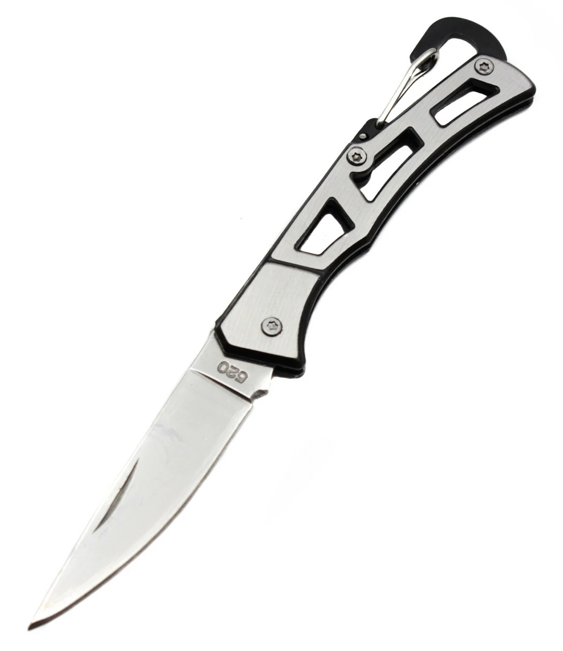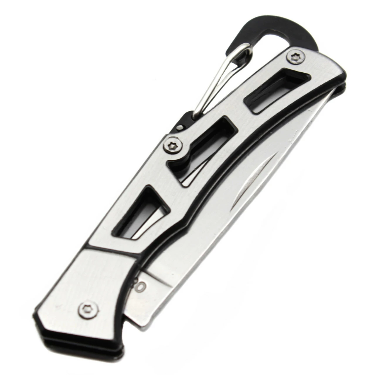 Нож складной отличного качества, ручка серого цвета, лезвие черного.