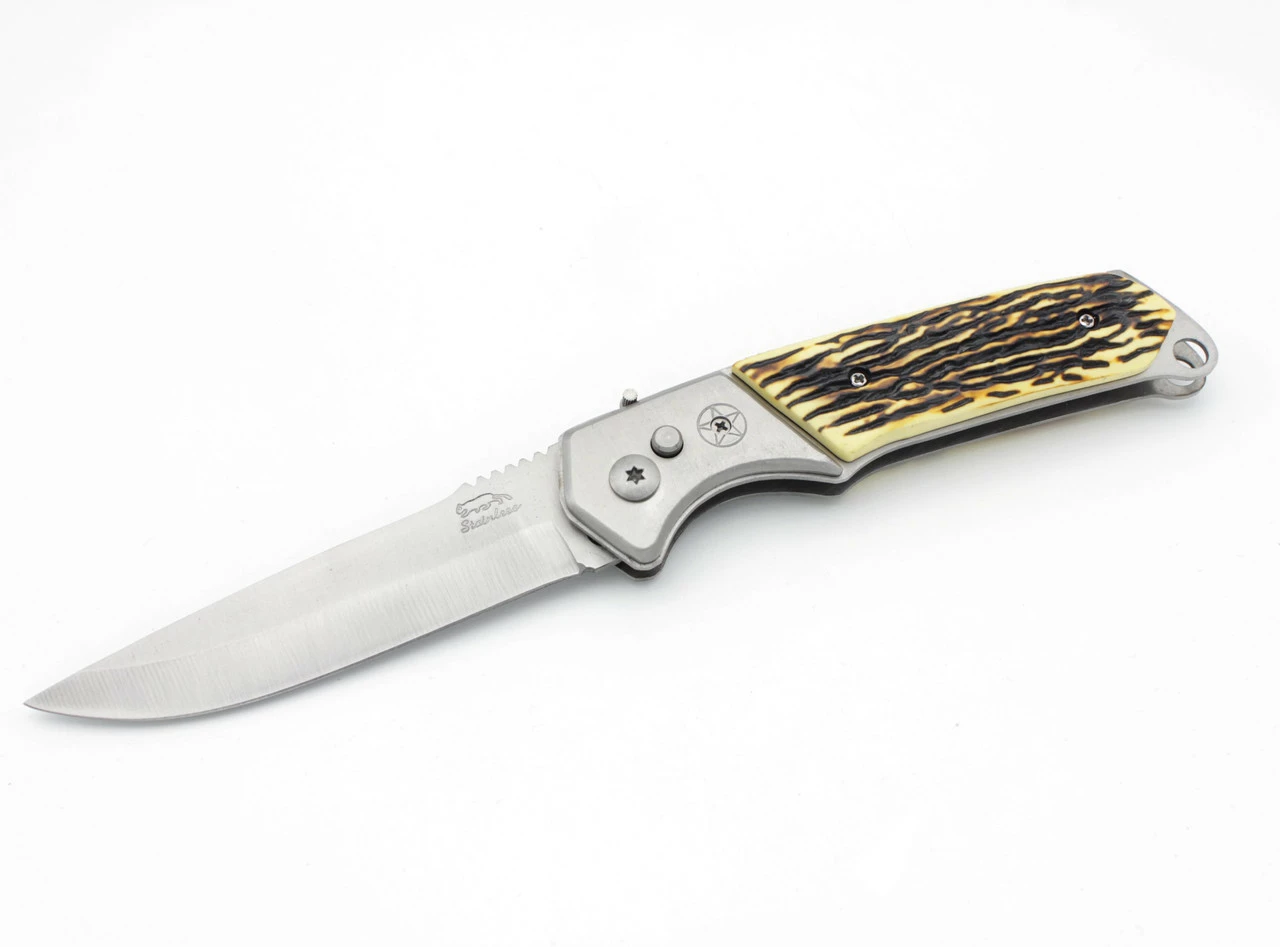 Выкидной нож 333B - ходовой универсальный нож. Приятный на вид. Прочная массивная ручка. Идет в чехле комуфляжного цвета. Длина ножа 24 см. В собранном виде 13.5 см.