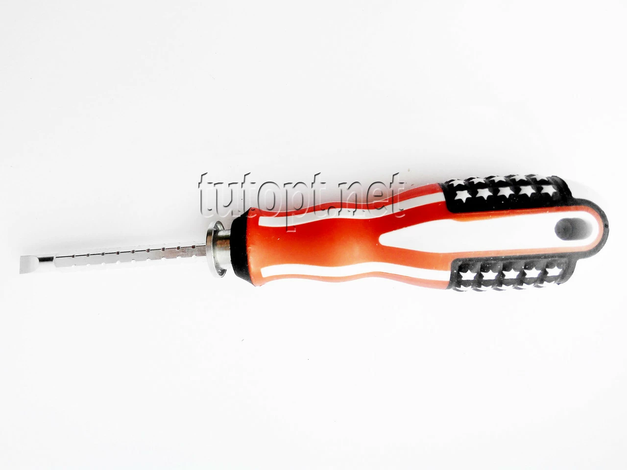 Отвертка двухсторонняя под американский флаг. Прочная ручка с антискользящими свойствами. Длина отвертки 18 см. Стержень отвертки с фиксатором.