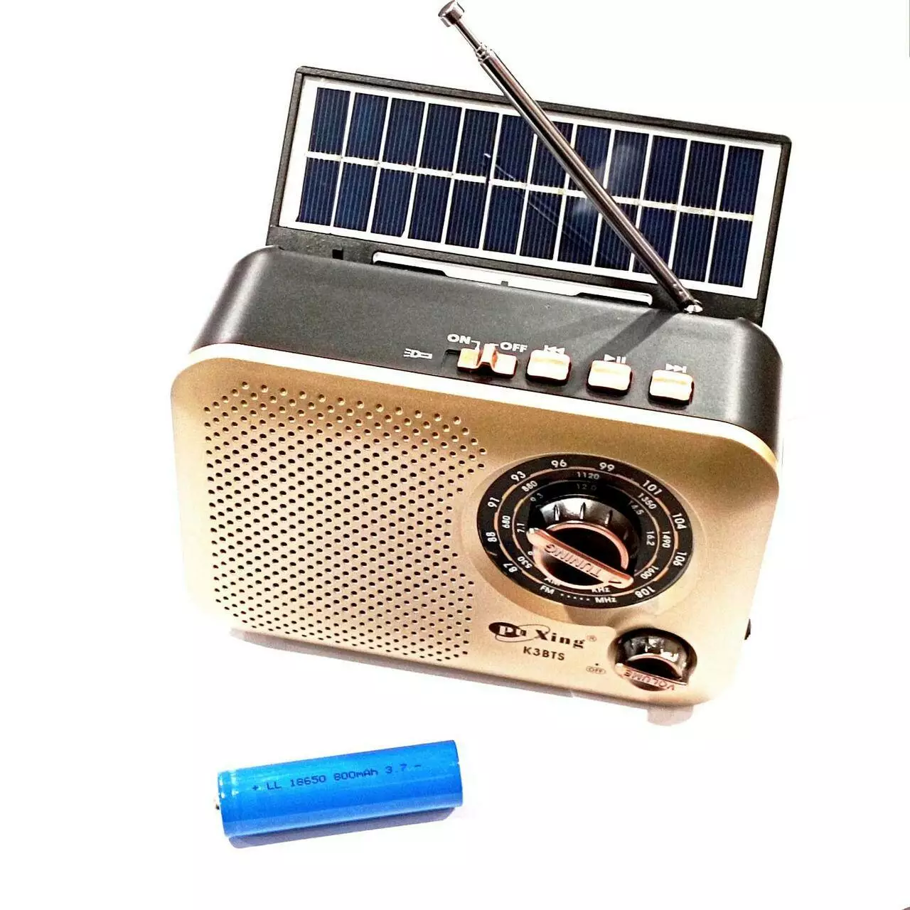Радиоприемник аккум. с фонариком, Bluetooth, USB, SD и солн. панель Pu Xing K3BTS