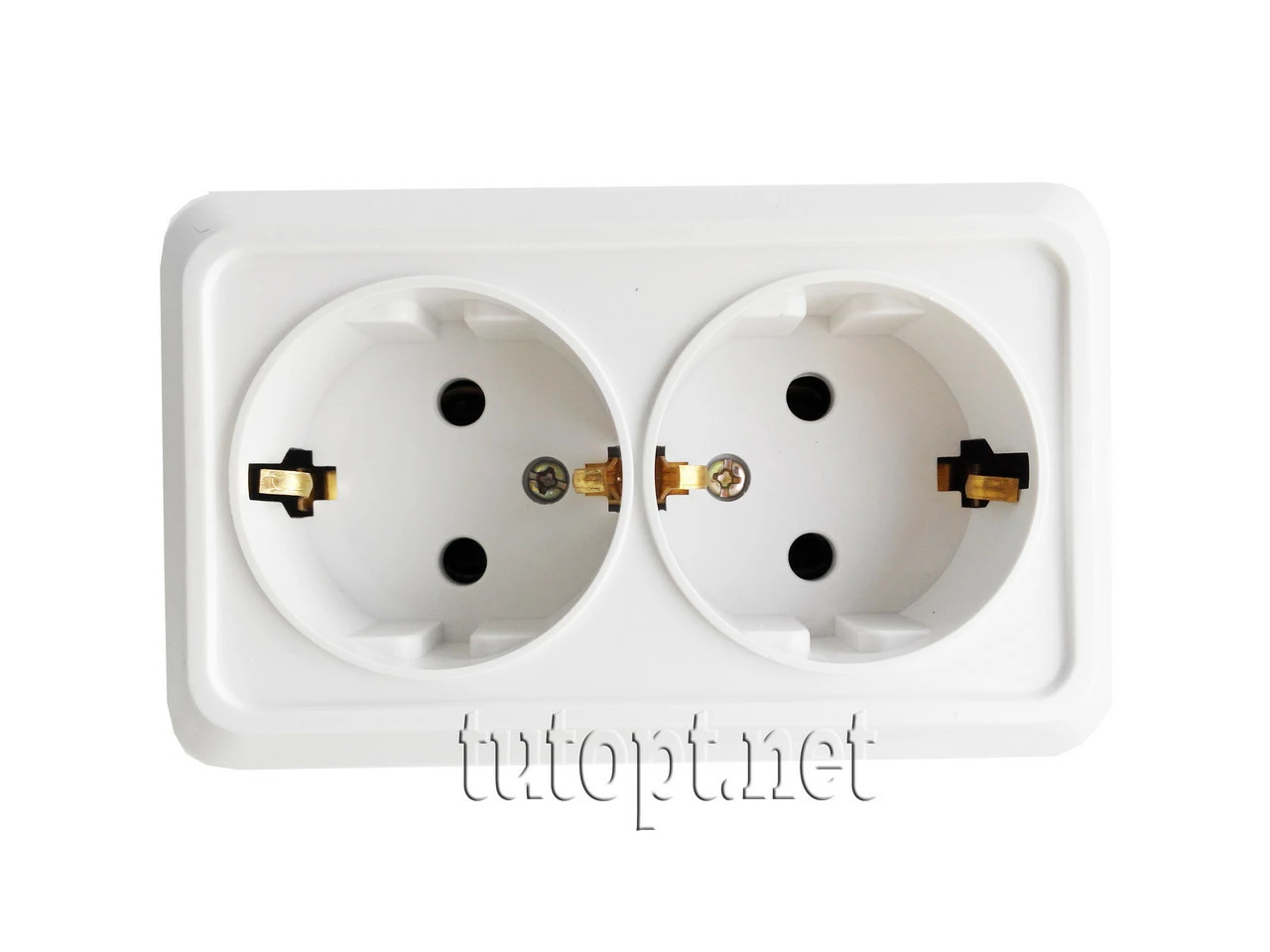 Двойная накладная розетка в белом цвете. Размеры 10.5х4.5х6.5 см.