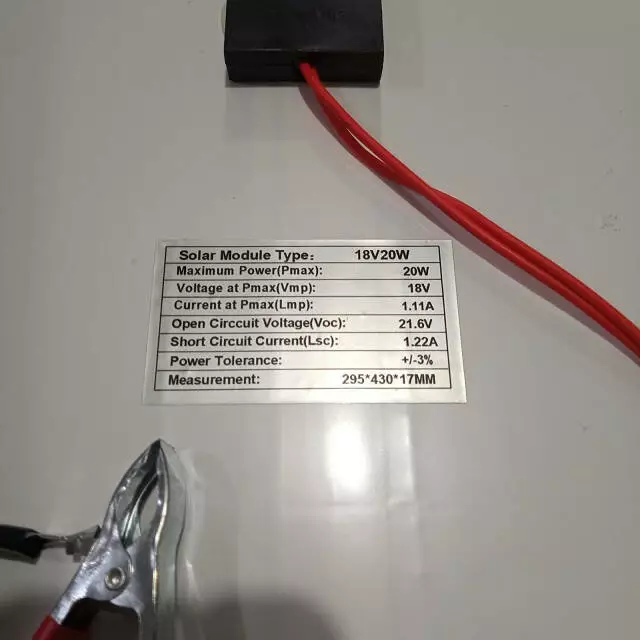 Солнечная панель SOLAR PANEL 18V20W имеет следующие характеристики: