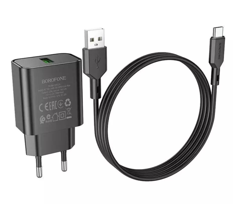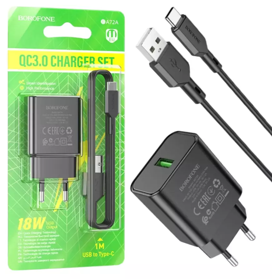 СЗУ Сетевое Зарядное Устройство BOROFONE BA72A Spring (QC3.0 18W) + Type-C