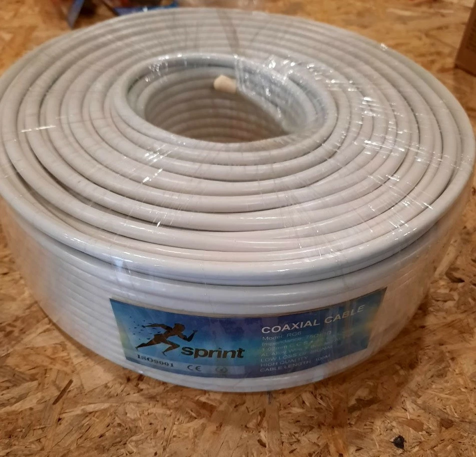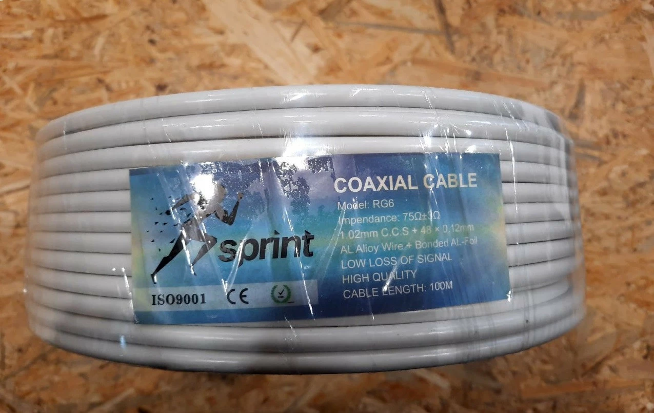 Коаксиальный кабель Sprint RG-6 100м, (32x0.12) / белый / антенный/ телевизионный