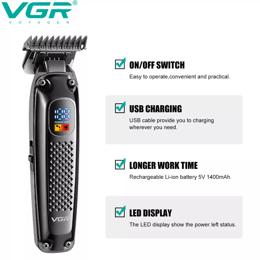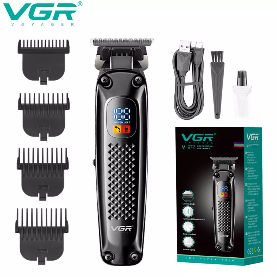 Беспроводной триммер для стрижки волос, бороды и усов бренда VGR.
