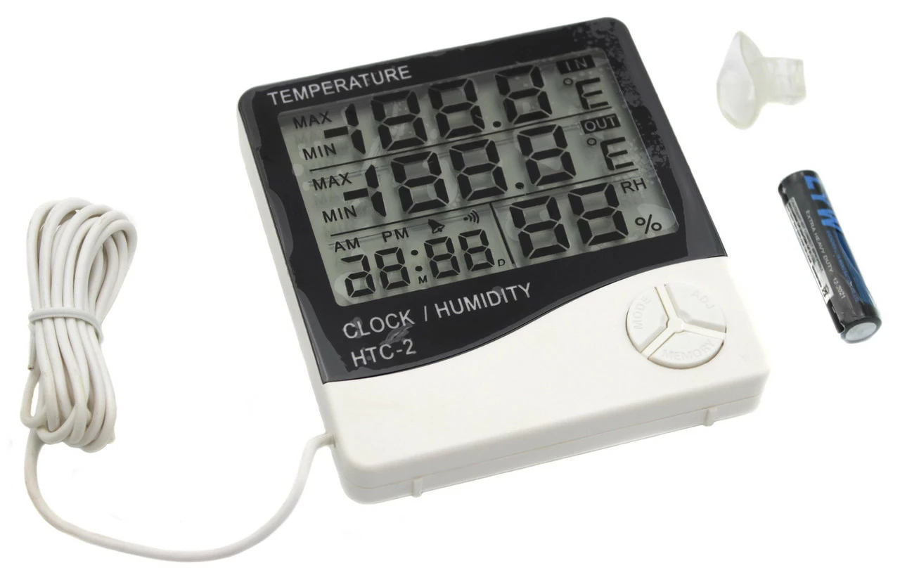 Термометр с гигрометром Цифровой HTC-2 с выносным датчиком температуры