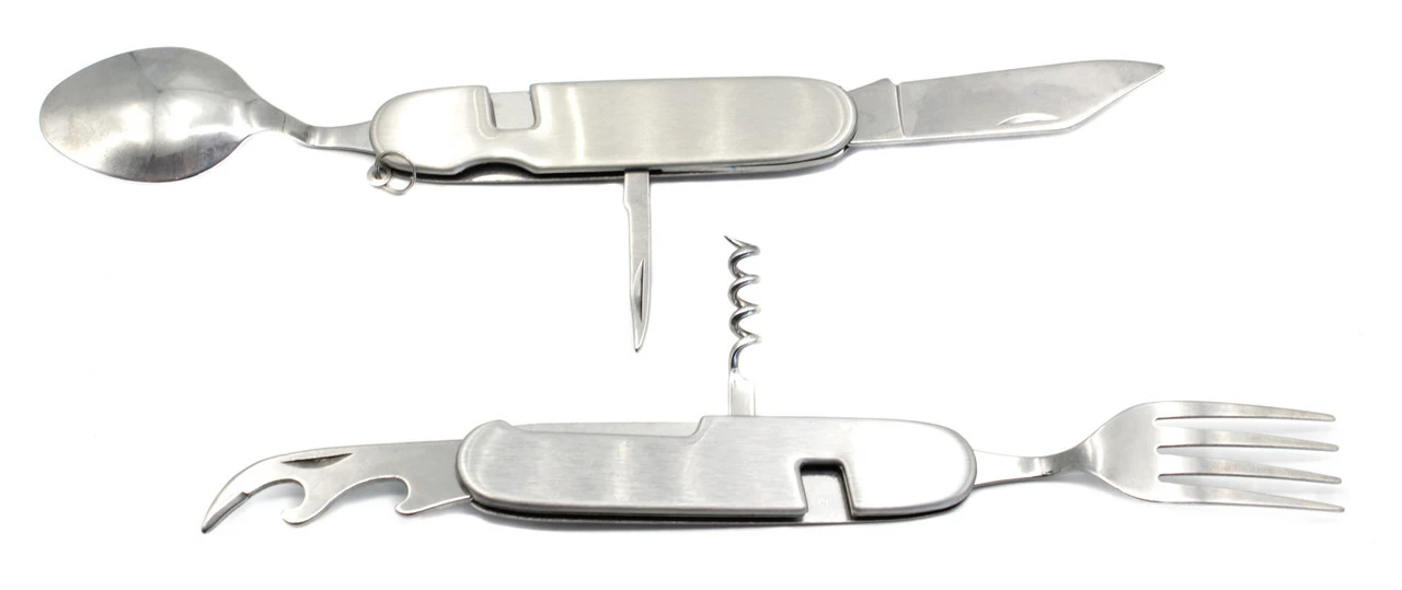 Мультитул содержит все необходимое в походе и пикнике. Имеется вилка с ложкой, открывалка, штопор, нож. Размер в собранном виде 11 см. Упакован в коробку.
