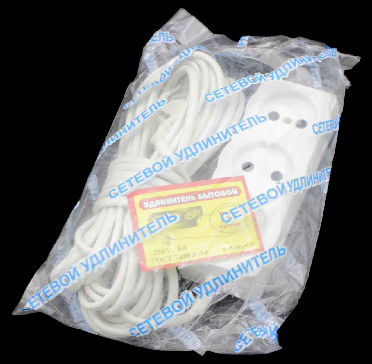 Удлинитель Харьковский длиной в 3м, с мощностью 6А. Качественный удлинитель с прочным шнуром. Предусмотрено три розетки под стандарт и евро. Доставка из Киева оптовыми партиями.