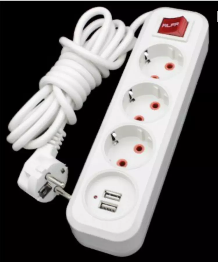 Возможности: 3 гнезда с выключателем, USB-порт для зарядки устройств