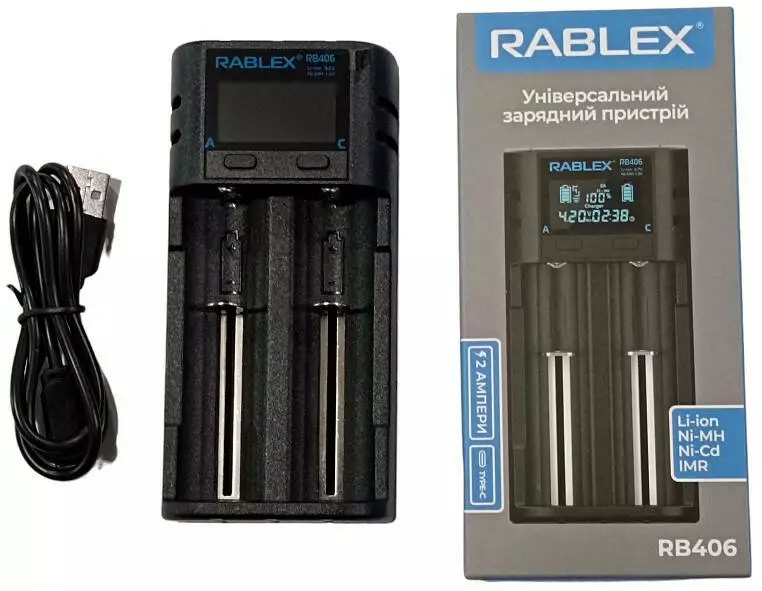 Зарядное устройство Rablex RB406 2x18650,DC (Type-C) 5V/2A,