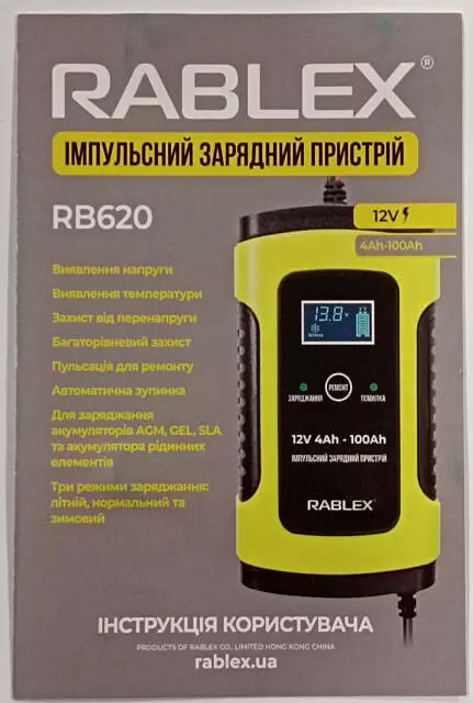 Зарядное устройство Rablex RB620 aвтоматическое, 75w, 12v, 4Ah-100Ah