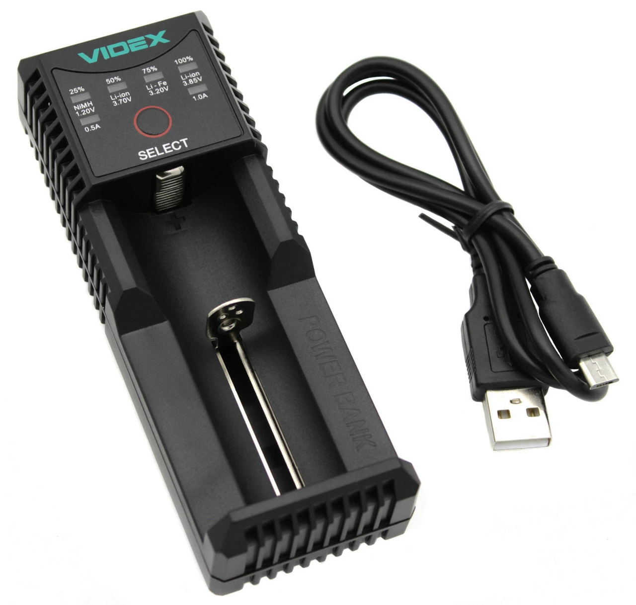 Зарядное устройство 1x18650 и др./ от USB / Videx U100